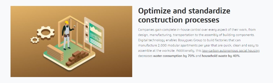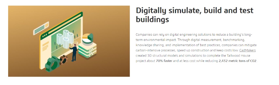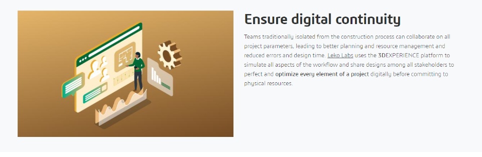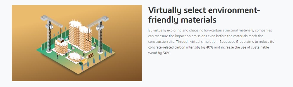 On the cloud-based 3DEXPERIENCE platform, companies can create a virtual twin of the built environment and use it to test the implementation of more sustainable materials and construction techniques. This enables companies to improve manufacturing and construction processes while incorporating better sustainability consideration throughout the entire project lifecycle.