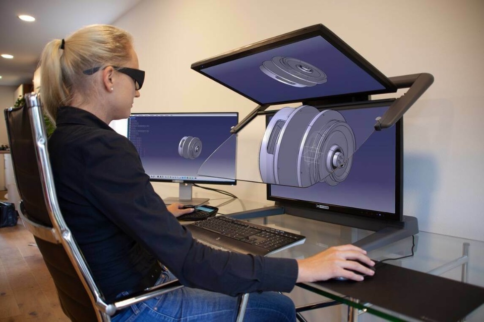 The 3D PluraView monitor systems provide the optimal stereo environment for comfortable and fatigue-free work in all 3D stereo and VR/AR desktop application areas. They are based on the innovative and reliable "Beamsplitter" technology and guarantee a pixel-precise 3D stereo display in highest image quality. Both software and hardware meet the high requirements of international standards in terms of quality and safety. Schneider Digital has already certified its 3D PluraView monitors for several hundred applications. With CATIA, another powerful unit is added.