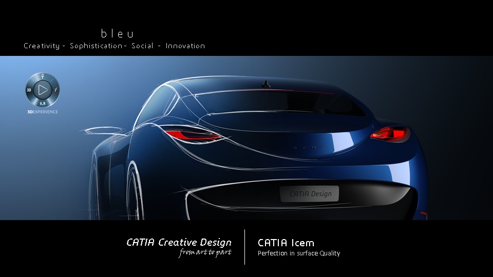 On september 24, 2013 we introduced the CATIA Design showcar called - b l e u - showcasing CATIA Creative Design and CATIA Icem solutions. We are pleased to share with the community the making-of b l e u through several WIP posts on the CATIA Creative Design community. The CATIA Design team, who made b l e u will post on a regular basis the different steps of the WIP. Arthur COUDERT - Pierre MAHEUT - Laurent IGARZA - Fabio BALLARI - Benoit CASELLI - Romain AFFLARD - Arnaud CASTERAN - Jerome DEREL - Nicolas FOURNY - Thomas LEMARCHAND - Xavier SIMOULIN - xavier MELKONIAN We encourage everyone to comment & share ideas. |
