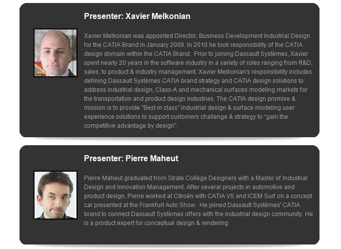 In this seminar we will also present what’s new in the latest release of CATIA for Creative Designers V6-R2013x.