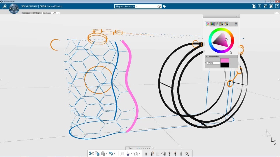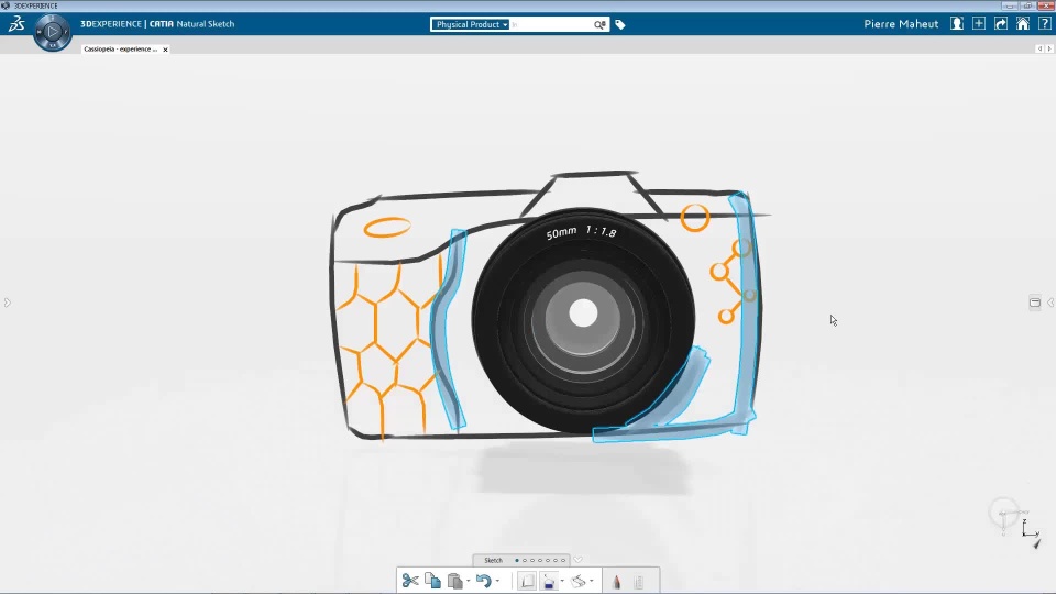 With CATIA Natural Sketch, Creative Designer can create 3D curves that automatically connect to each other.