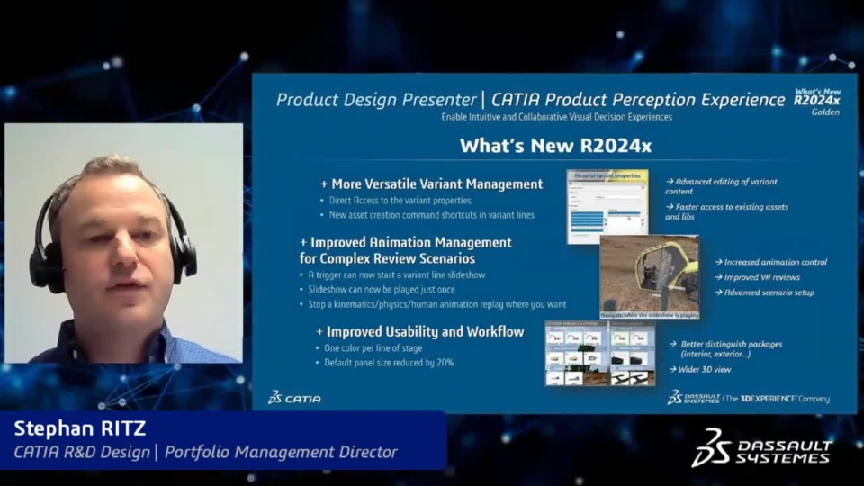 We conclude this fantastic series of CATIA Design Talks focused on the What's new 2024x release, exploring the amazing improvements to our V+R Product Experience portfolio.