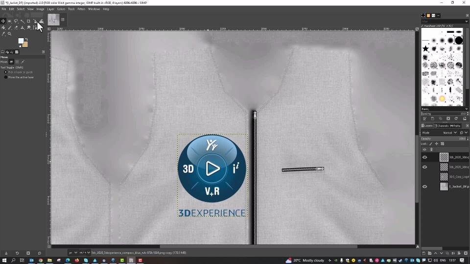At 2023x CATIA Human Design is enhanced to enable customisation for the surface textures. This means we can change everything about the clothes and shoes, or add logos to our Humans. It's really easy! In this example I Exported the Jacket texture in Ultra HD (4096x4096 pixels) from the latest Generative Human, to make a PNG file I could edit in an image editing program. I then added some logos and saved a new texture, which I could import again and see on my Human model.