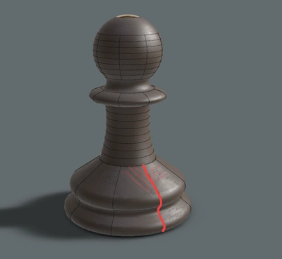 Considering these two requirements, the only solution is to rotate the mapping on each of the segments by 45° and then copy the material to similar segments above it. As a result, we get a material mapping that is consistent across the whole chess piece: