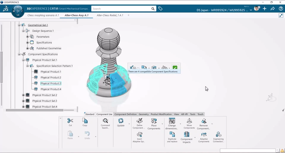 With Generative Shape Design, we could easily model the pawn and the queen’s shape, breaking them apart and move them around to see which part goes where.