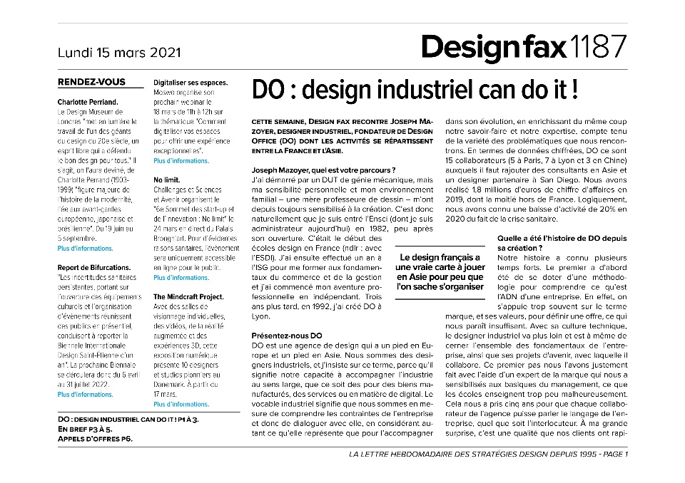 Ne manquez pas l'interview de Joseph Mazoyer et son témoignage de la pratique du design en agence , l'usage de la 3D du 3D print et l'ouverture au marché Chinois