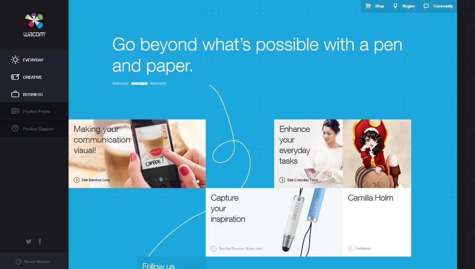 Wacom Redesigns is Online PresenceThe aim of this change was to reach a new customers and engage new audience non-professional and non-familiar with the brand. Fi agency, choose to put the product experience first and allow the visitor to dig deeper through intuitive suggestions and a user-friendly product finder. For more details, read the full article. Go and visit the new website here and let us know what do you think? |