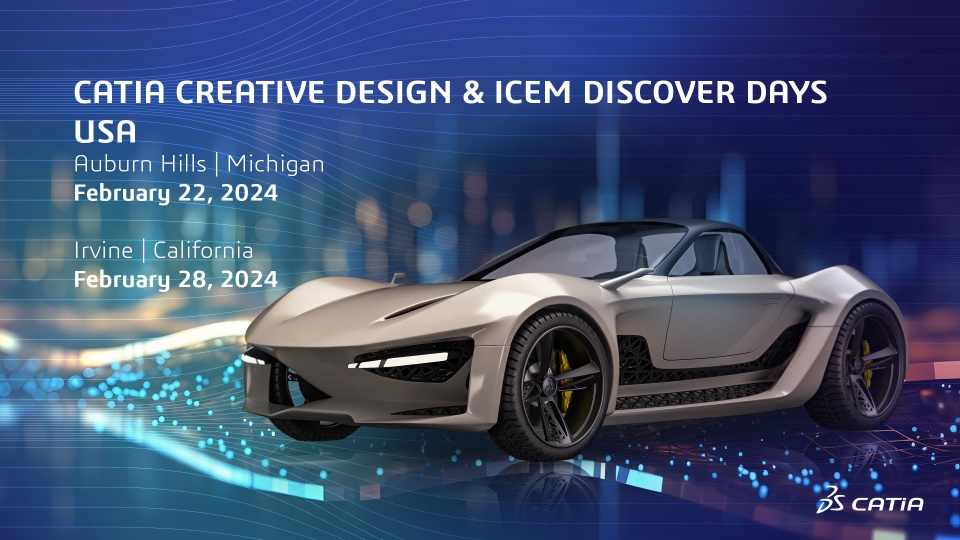 We remind you that the CATIA Creative Design & ICEM Discover Days USA are coming closer! Let's meet in Auburn Hills on February 22, and in Irvine on February 28, to participate to a half-day event dedicated to CATIA Design & Styling!