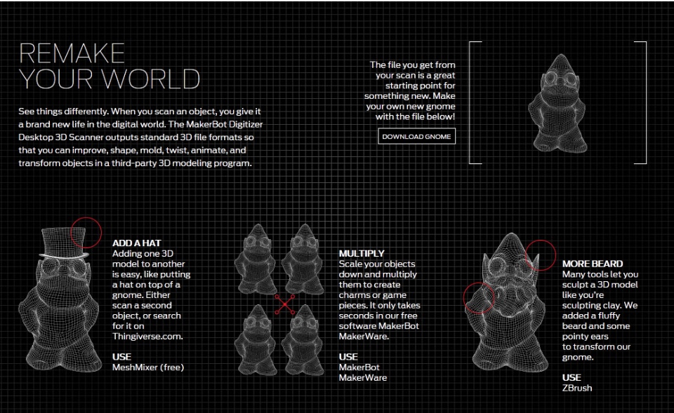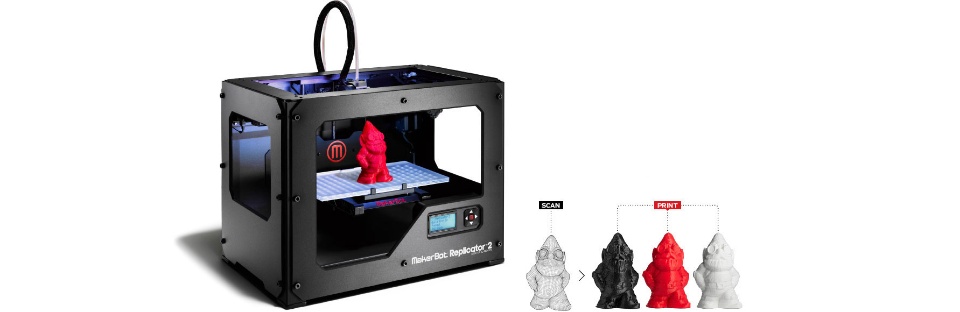3D Design get definitely more democratic with The MakerBot Digitizer. Designed for fast and easy 3D scanning of physical objects. How does it work? it scans an object with a camera and a pair of lasers, and instantly renders you a 3D design! So, no technical know-how is required.