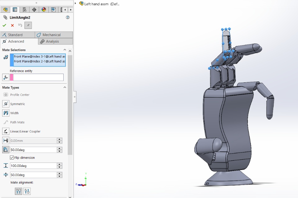 I am facing problem when trying to set the mate controller, even i already set the finger angle in mate, but when i try to adjust the angle using mate controller it will flip to the back as the picture. anyone know the reason or know how to solve this? please help. thank you