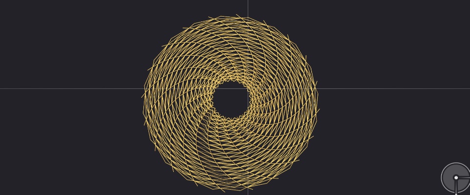 Galaxia is shaped of 20 timber trusses converging as a spiral towards one point in the sky.