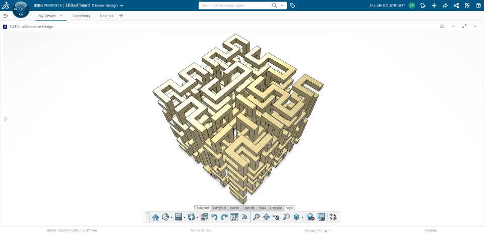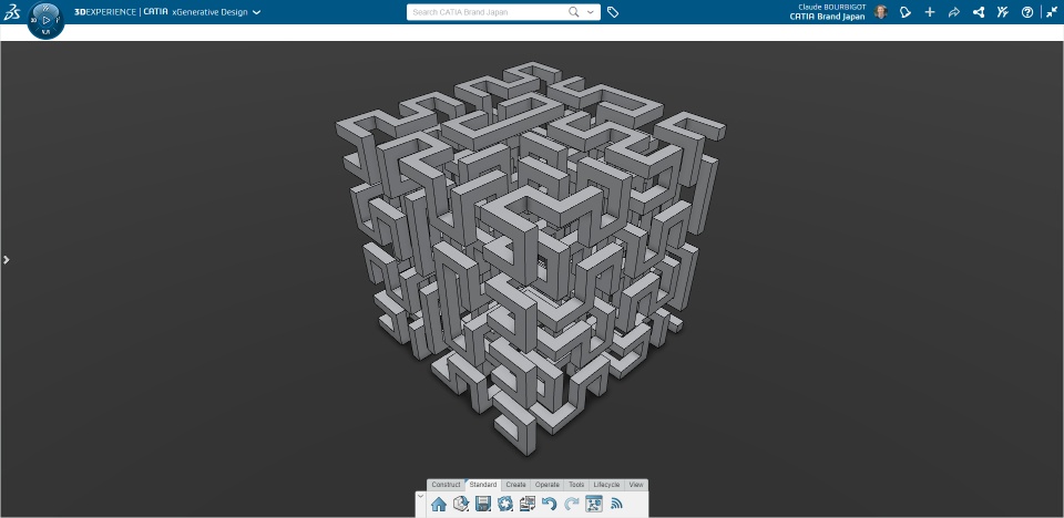 Here are a few pictures taken of a model done with X Generative Design. it is called Hilbert Curve. it is a space filling curve. This model is part of a series about L-systems modeling in CATIA where I share some tutorials and models to skill up with the app.