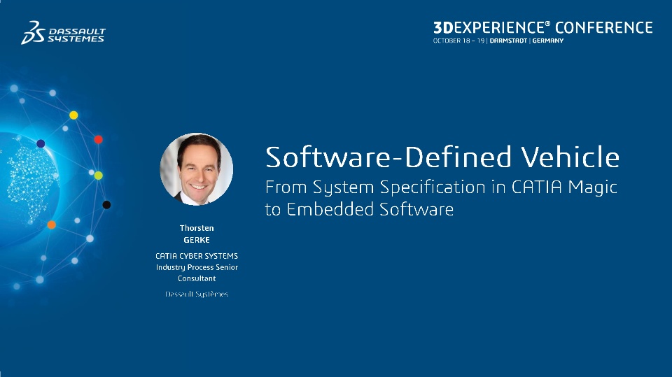 Last week Dassault hosted the 3DEXPERIENCE conference in Eurocentral in Darmstadt/Germany. Two days of exciting content, exhibition and technical presentation sessions showing the latest product innovations helping enterprises become more competitive in their daily work. I also had the pleasure to talk about a highly compelling trend in the automotive industry, Software-Defined Vehicles and how Dassault solutions can help support this important technology evolution in automotive.