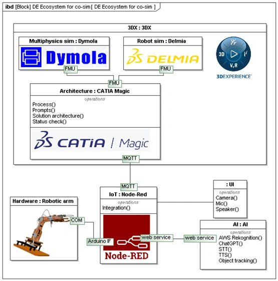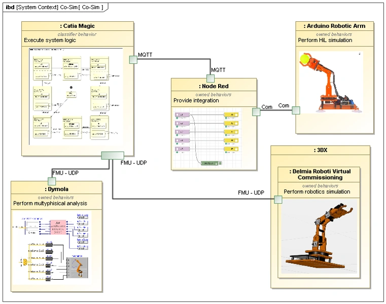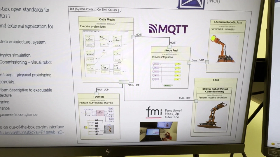 Next is co-simulation leveraging open standards: SysML, Modelica, FMI, MQTT, and other OOTB connections integrating various application in modular way.