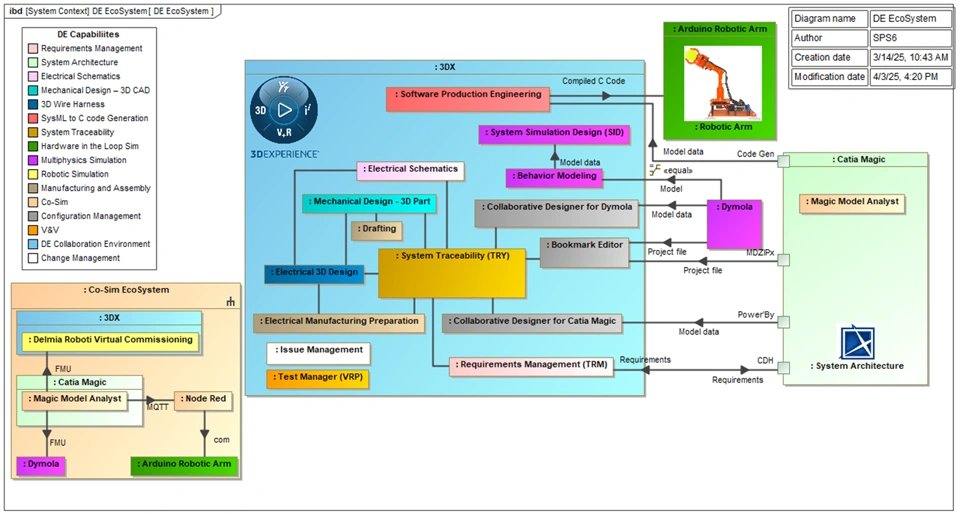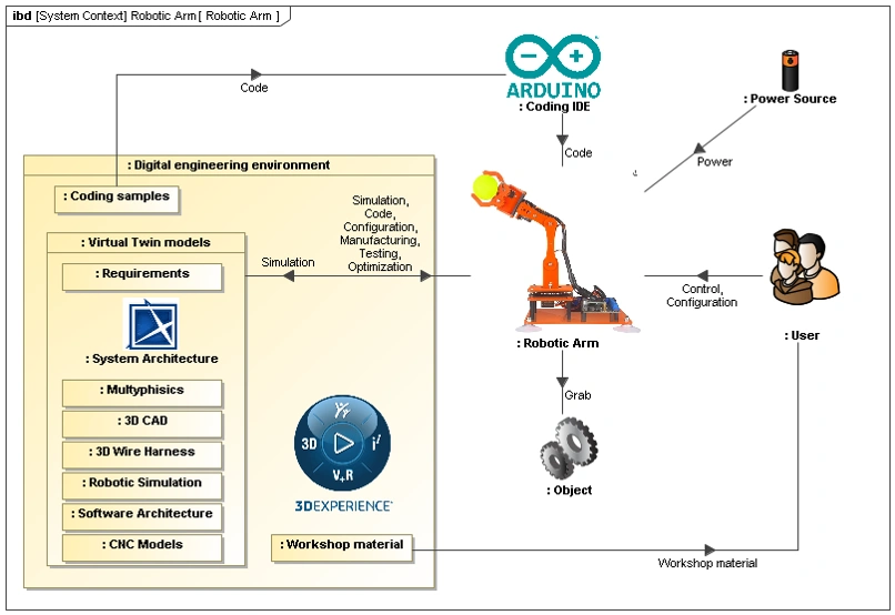 We’re excited to share an innovative project that demonstrates the tangible benefits of Digital Engineering (DE) and Model-Based Systems Engineering (MBSE) through a hands-on example: a highly portable Robotic Arm. This project bridges academia and industry by showcasing the full product lifecycle—systems engineering, design, manufacturing, and validation—using state-of-the-art digital technologies, including the 3DEXPERIENCE platform.