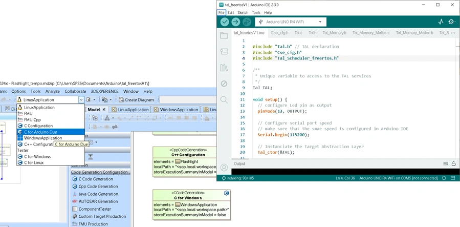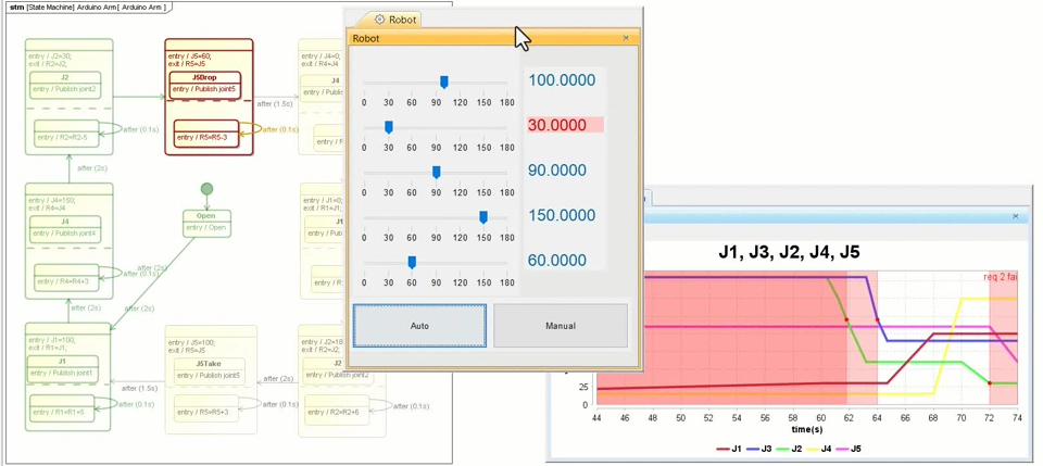 Ones we are satisfied with system architecture, logic, and requirements V&V based on system end design models we can finalize with software design. We are consuming system requirements for software design and models for code generation. Using model to code generation we can speed up process and streamline model to code transition. This approach requires UML or SysML to code generation capability support for target platform – robot hardware, stable system architecture and quite repeatable change and code generation process. Such process gives clear traceability from code to user needs.