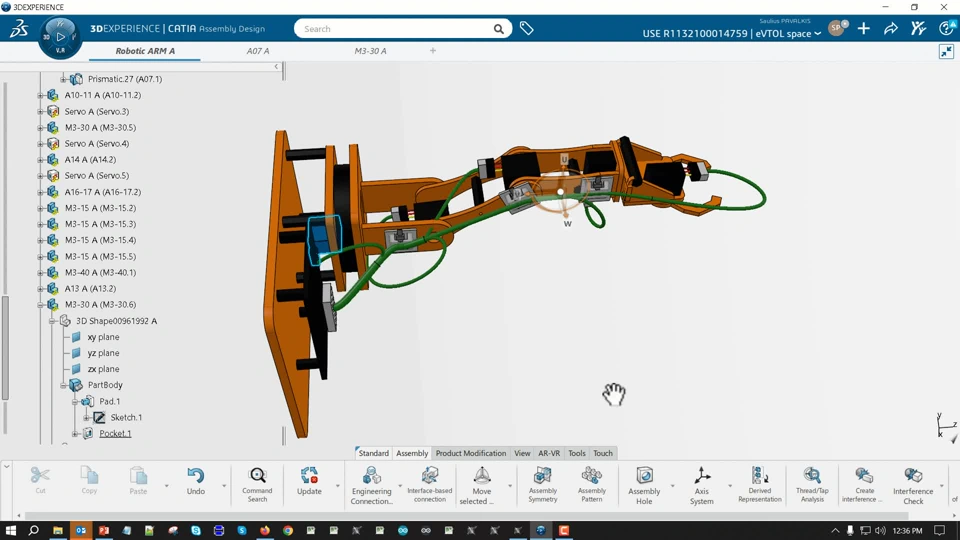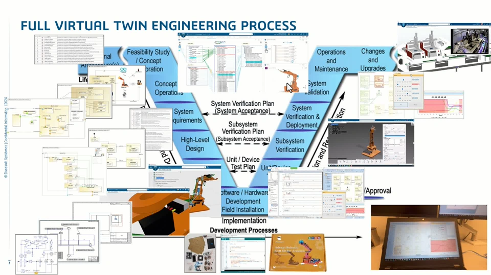 In project we cover following engineering disciplines and tasks: requirements management, systems engineering, electrical schematics, mechanical design - 3D CAD, 3D wire harness, model (SysM) to code generation (C and target platform – Arduino), configuration management - baseline, traceability, hardware in the loop, multiphysics simulation, robotic simulation, manufacturing and assembly, co-simulation, V&V, operational monitoring and diagnostics.