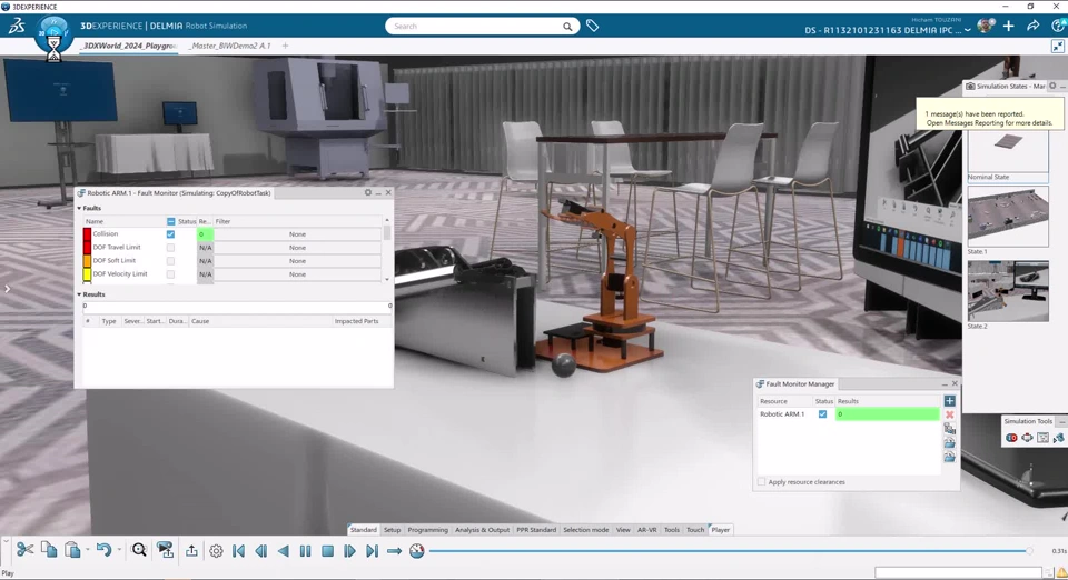 Robotics Simulation - It is performed to predefine robot behavior and ergonomics analysis, identify boundaries, perform system V&V. In general - virtual design of a robot. Precondition for robotic simulation is 3D CAD. From systems engineering point input is system architecture, requirements and result is feasibility, and V&V.