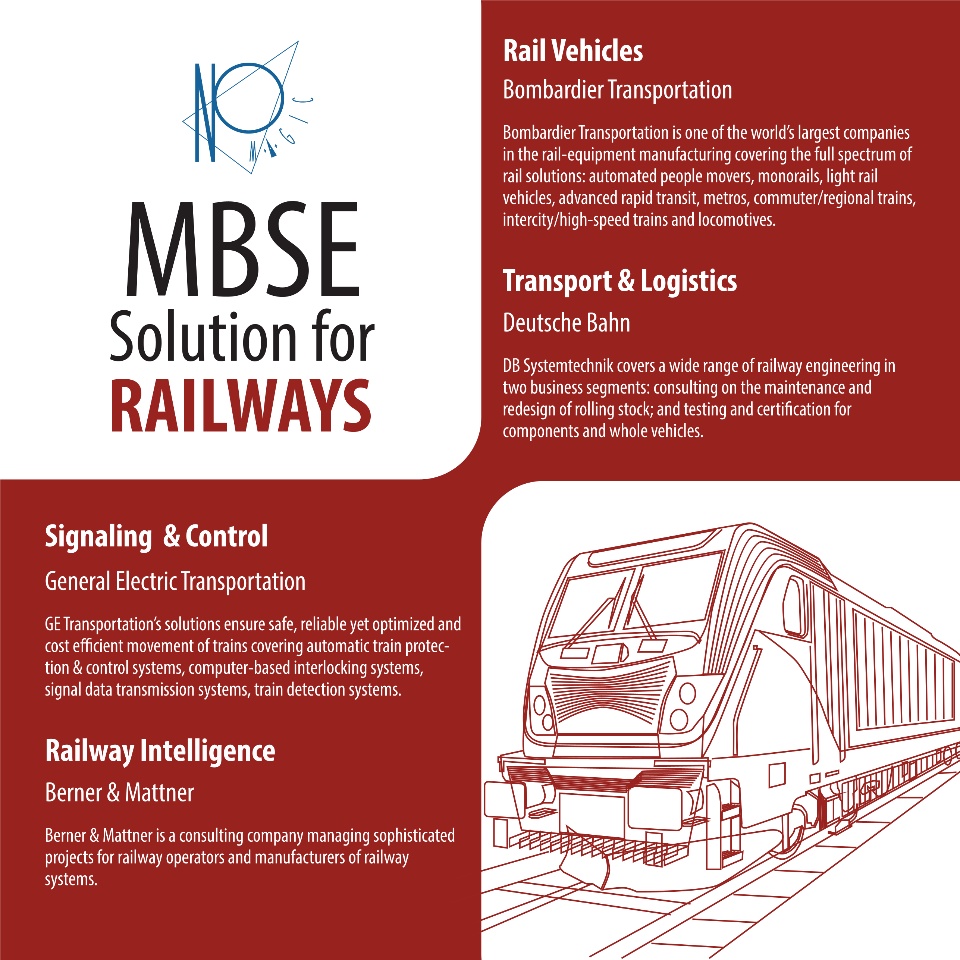 | Railway Intelligence | Berner & Mattner Systemtechnik GmbH. Consulting company for over a decade, managing sophisticated projects for railway operators and manufacturers of railway systems. Currently employs 450 professionals at 7 locations in Germany and Austria. | Improving communication using well developed and recognized standards. Berner & Mattner offers variety of services in complex projects. Leading companies such as Bombardier Transportation, Deutsche Bahn and many more have been placing their trust in Berner & Mattner’s expertise for years. Berner & Mattner is a pioneer in model-based technologies. UML and SysML standards are widely used for systems architecture specification with excellent results. |