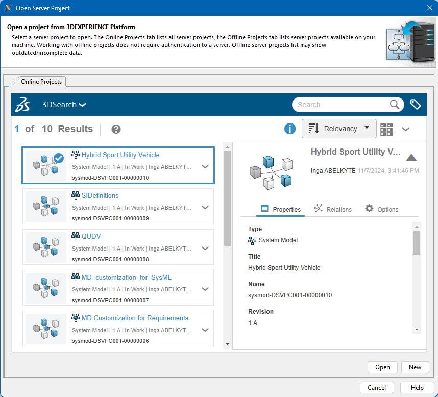 Collaborative modeling and Power'By introduces the ability to transfer projects between various #3DEXPERIENCE platform instances using .szip files and improved project migration from Teamwork Cloud to the 3DEXPERIENCE platform. Additionally, you can now create branches from any model iteration, and use a new embedded browser with 3DSearch capabilities to select and open projects.