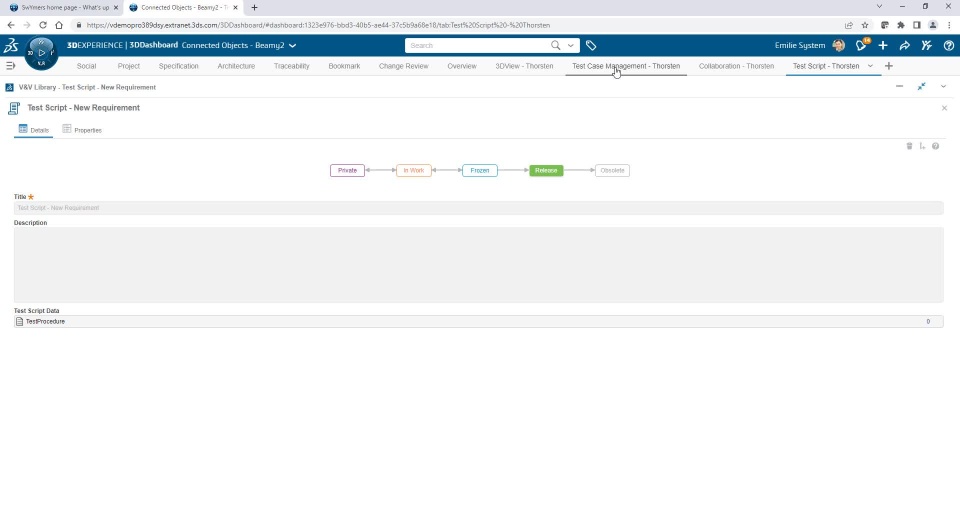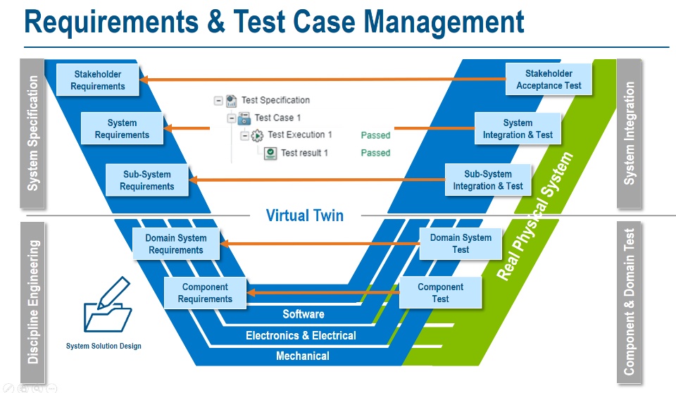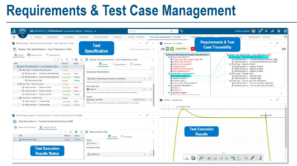 The requirements defined for a product will finally need to be checked against their implementation in order to ensure that we are satisfying all requirements. Given the large amount of requirements that someone usually has to deal with in engineering will finally also lead to a decent level of complexity around the test cases. In order to get a grip on this complexity it requires to put a well organized data model and overarching approach in place that connects requirements specifications with test management and also embeds a traceability between those. Moreover we also need to wrap this into a project management approach defining the schedule and resource assignments for the test. The great news: 3DEXPERIENCE has technology in place that supports you to do this. Following my previous post on requirements management & collaboration https://r1132100503382-eu1-3dswym.3dexperience.3ds.com/#community:4GJPS8QmTuC4wF8BSLitkw/post:K8ABR93UQwGOGSBlUROdNg