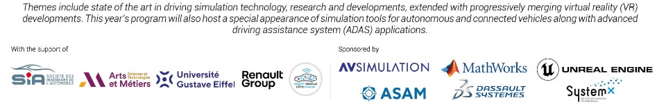 Themes include state of the art in driving simulation technology in XIL (MIL, SIL, HIL, DIL, VIL, CIL), research and developments, extended with progressively emerging virtual and augmented reality (XR) developments. This year’s program will also host a special session on virtual validation and certification tools for autonomous and connected vehicles along with advanced driving assistance system (ADAS) applications. Human factors and motion rendering nevertheless will remain the now traditional axis of the conference. Dassault Systèmes is present with :