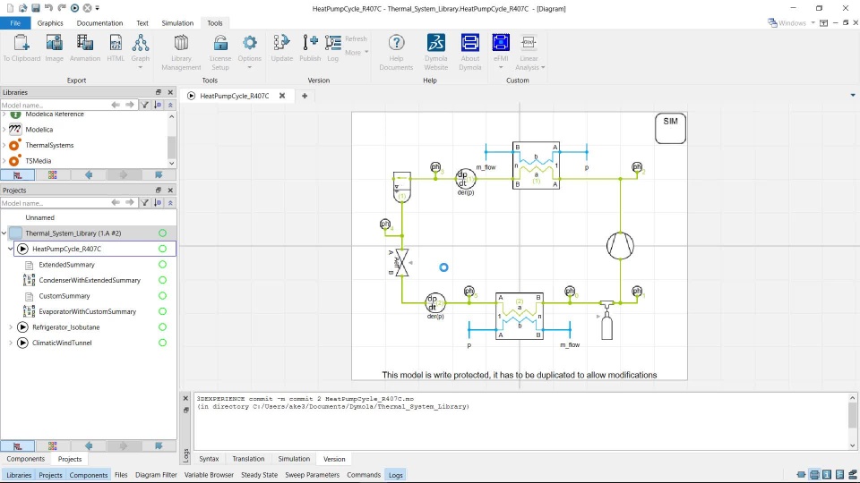 The Dymola standalone program has been connected to the 3DEXPERIENCE platform. Models can be version controlled in 3DEXPERIENCE, and the complete lifecycle is integrated with PLM tools. Furthermore, tools such as 2D/3D design and Project Planning are available and can launch Dymola.