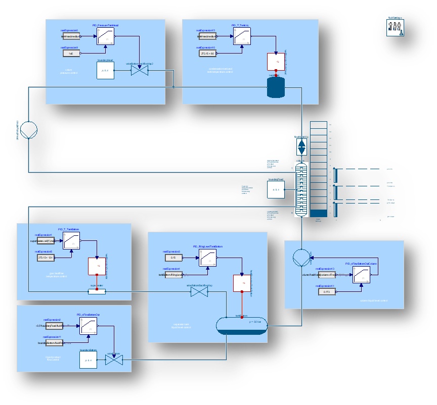 The library contains models to simulate thermal separation processes based on multi-phase multi-component equilibria. It allows you to predict the behavior of separation units, analyze heat and mass transfer processes, and to optimize operating conditions to maximize efficiency and minimize energy consumption. Using the Thermodynamics Connector library, complex media models available.