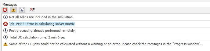 I got the Job 19444: Error in calculating solver matrix.