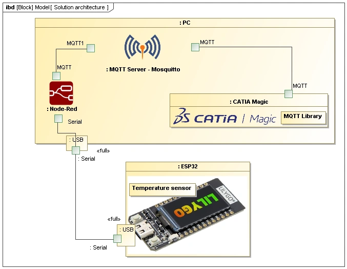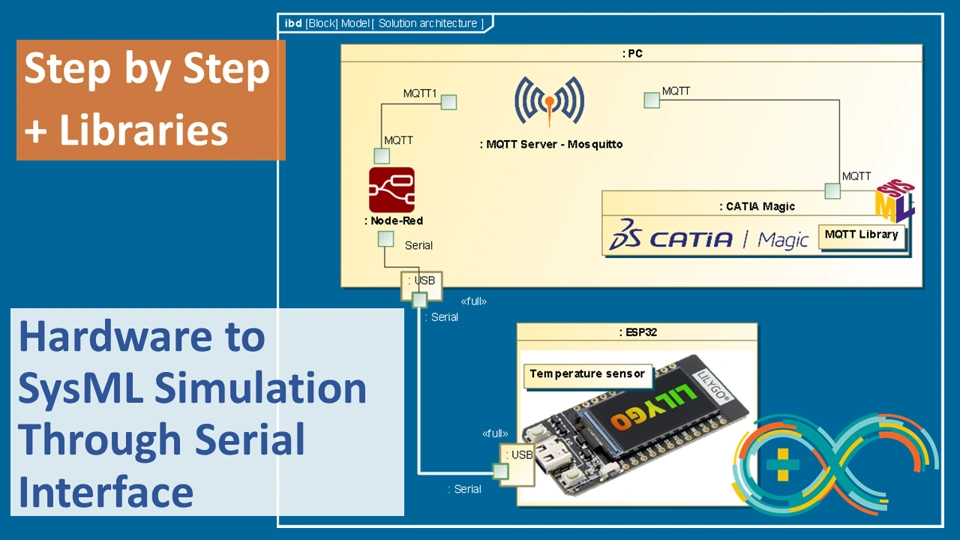 In this short step by step tutorial we cover method how to connect hardware to SysML simulation using serial communication interface. We go through SysML model creation and show how to use MQTT libraries (provided below), also through Node-Red flow setup from scratch. As a hardware we are using ESP32. Last but not least we l average ChatGPT for great scripts generation capabilities.
