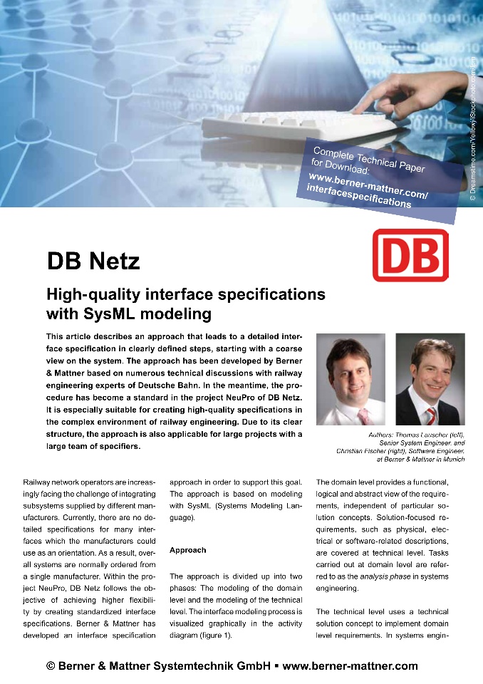 his article describes an approach that, starting with a overview of the system, leads to a detailed interface specification in clearly defined steps. The approach has been developed over the course of many technical discussions in collaboration with railway engineering experts of Deutsche Bahn AG. It is especially suitable for creating high-quality specifications in the complex environment of railway engineering. The procedure has become standard in DB Netz AG’s NeuPro project. Due to its clear structure, the approach is claimed to be suitable for major projects with large teams.