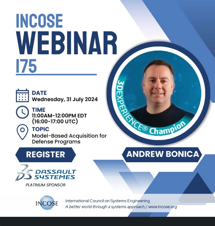 Join INCOSE for our next webinar: “Model-Based Acquisition for Defense Programs,” where Andrew Bonica, multi-disciplinary engineer & Marine Corps veteran with 20+ years in aerospace & defense, will host a critical discussion on overcoming challenges in defense acquisition.