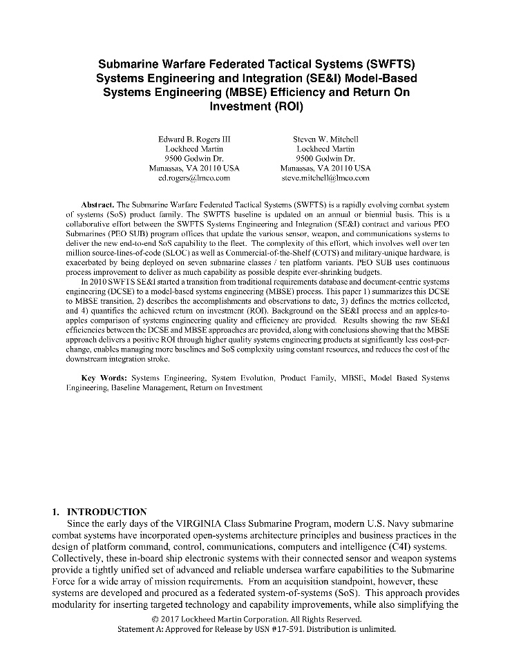LMCO identified that the tool support shown in Figure 2 is critical to the productivity and quality gains projected for the conversion of SWFTS from a document-based to a model-based systems engineering process. The unique solution was implemented by LMCO as a No Magic Inc. MagicDraw plugin.