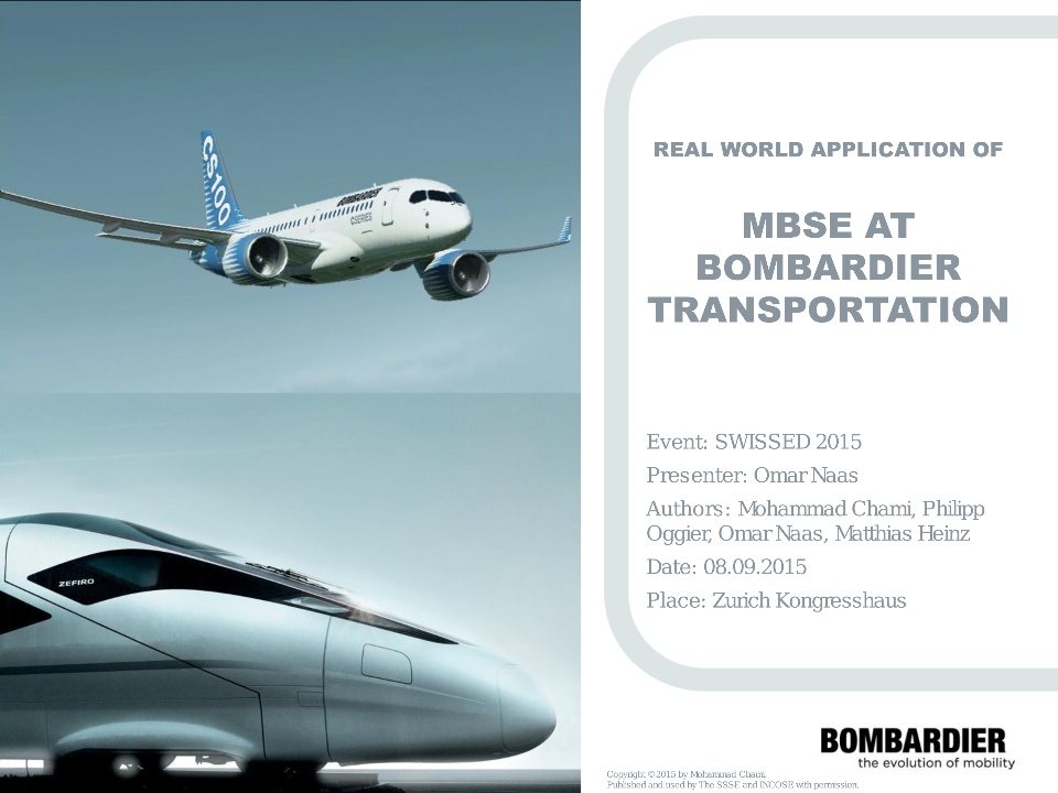 - SSSE symposium by the worldwide recognized Modeling Expert at Bombardier Transportation Omar Naas. The presentation took place on the 8th of September 2015, in Zurich, Switzerland.