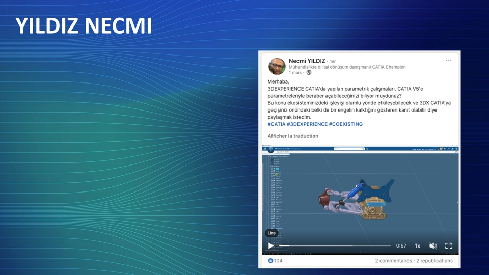 Highlighted his exceptional ModSim project during his speaking engagements at various events. (Series of Post High quality + User Interview + Speaker at CATIA Events)