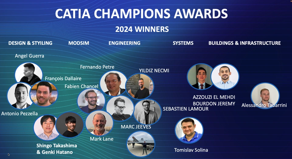 This year, we celebrated the remarkable achievements of our 260 Champions, representing diverse industries and domains, from automotive and aerospace to consumer goods, Systems, MBSE and Building & Infrastructure. Their work highlights the incredible versatility of CATIA and its powerful impact across sectors.