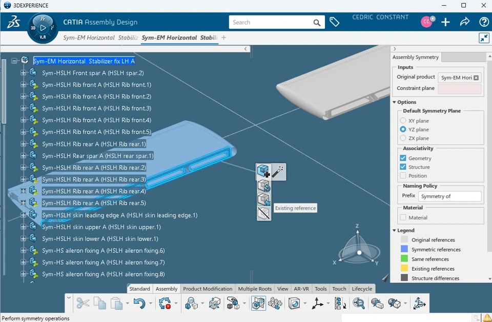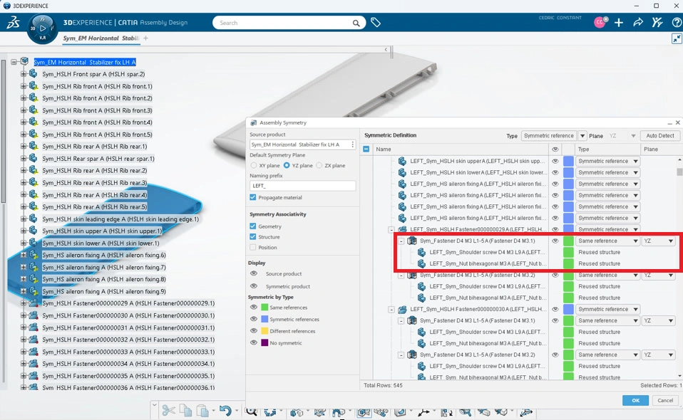 The new capabilities allows also to manage more efficiently symmetry options on a subassembly (capability to select “Same reference” for a sub assembly).