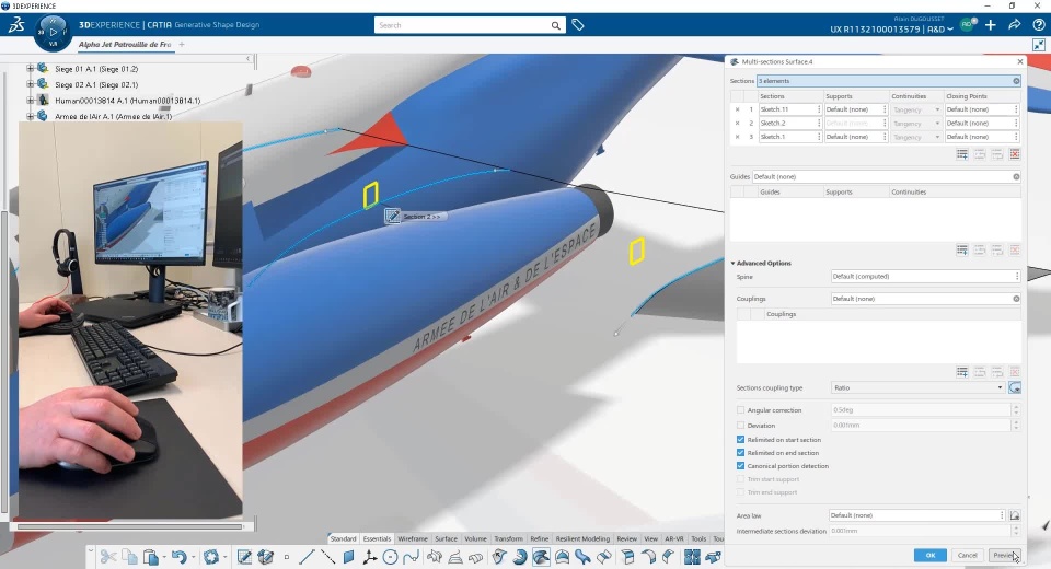 Here is a short video showcasing some (basic) surfaces creation on my last project, the French "Patrouille de France" Alpha Jet plane.