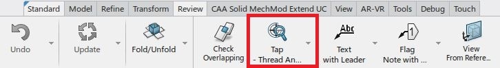 In SheetMetal Design app, Tap-Thread Analysis command is available in ‘Review’ section on action bar.