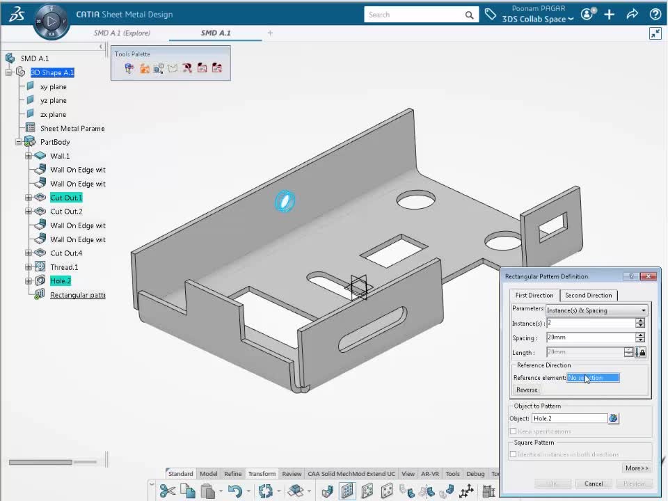 There was need to provide Tap-Thread Analysis command for SheetMetal Holes. Currently Tap-Thread Analysis don’t detect the Threads or Taps on SheetMetal holes. New Tap-Thread command is added in Sheet Metal Design and Sheet Metal Hydro-formed Design application from 3DEXPERIENCE R2019x.This command behaves similar to Tap-Thread Analysis command from Part Design application with the additional functionality of having thread analysis in both folded and unfolded views.