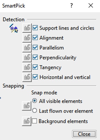 In the “All visible elements” option all geometries in the sketch scene are taken into account for the detection of Smartpick.