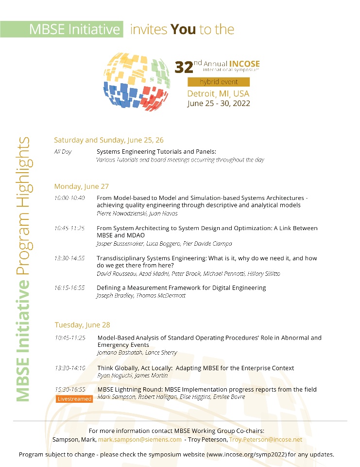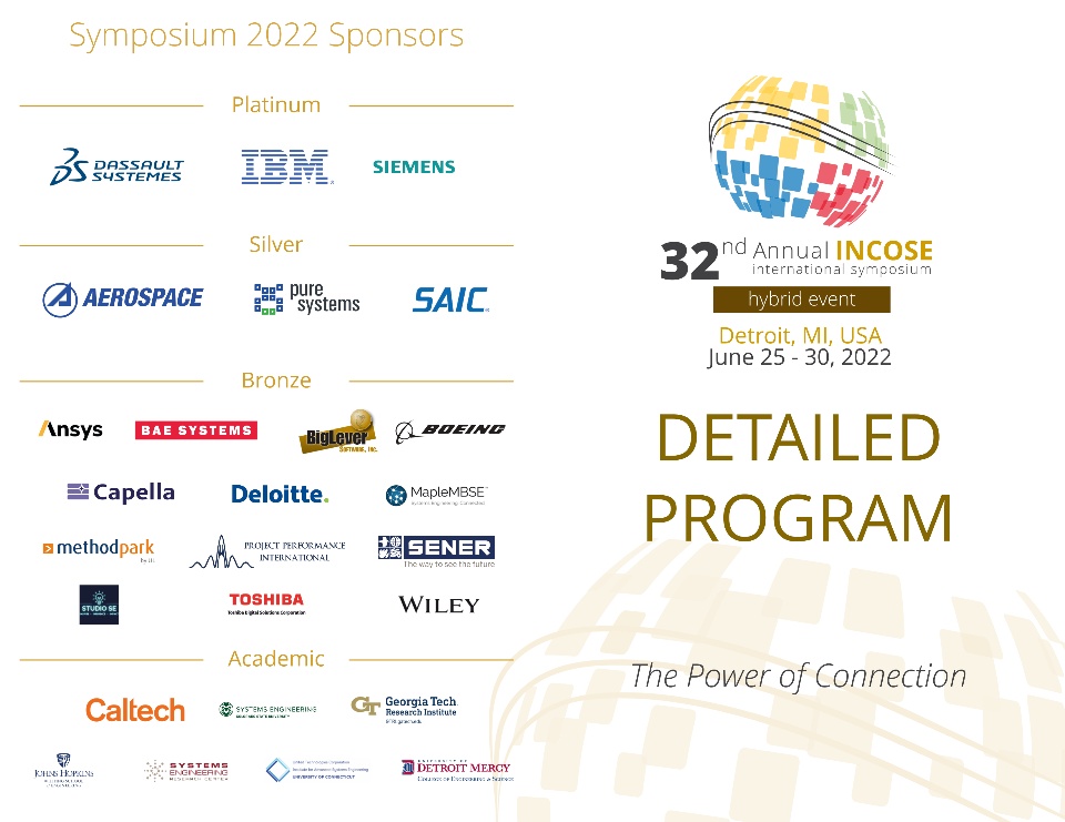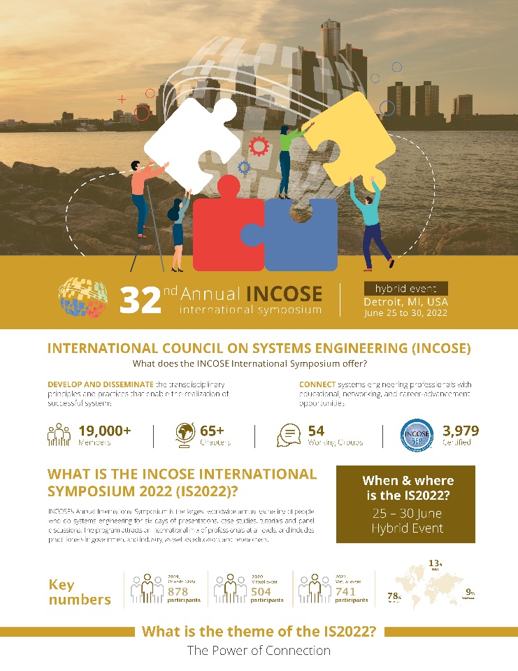 The 32nd INCOSE International Symposium (IS2022) will be held as a hybrid event between June 25-30, 2022 in Detroit, Michigan, USA, the power center of the global automotive industry. Hundreds of systems engineering (SE) enthusiasts around the world will be converging in the "Motor City" next week, plus many more virtually through the digital platform, for nearly a week long of presentations, case studies, workshops, tutorials and panel discussions.