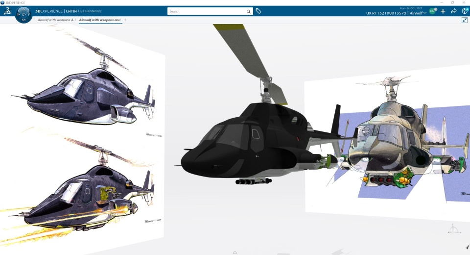 My first step was then to gather pictures from both this helicopter and its fictive military development and manage them in our 3DEXPERIENCE platfom.