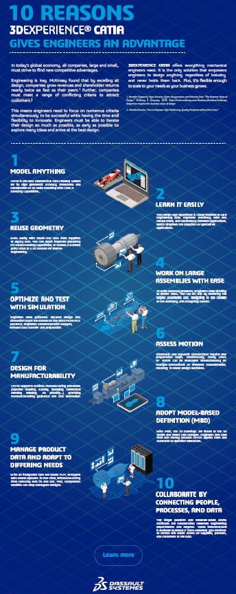 You may also find this infographic here: https://discover.3ds.com/10-reasons-3dexperience-catia-gives-engineers-an-advantage