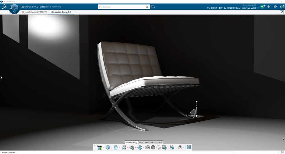 Barcelona Chair, modeled and rendered in CATIA
