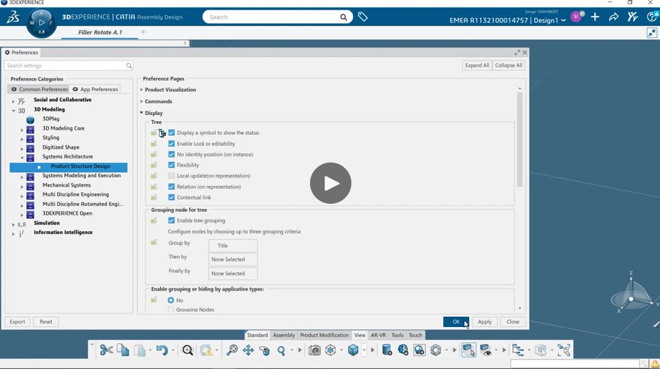 There is a specific Preference named "Enable tree grouping" in 3D Modeling/Systems Architecture/Product Structure Design. It allows to create groups based on the Physical Product reference Title. WATCH FULL VIDEO HERE