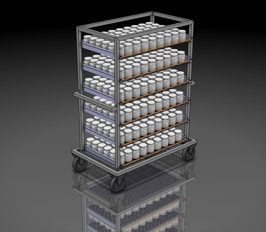 In the design of this trolley, which are connected by steel welding. Each floor is made of bent steel sheet and is designed in the environment of CATIA sheetmetals , and for each floor a bar is restrained by a wire to close the front of each floor.