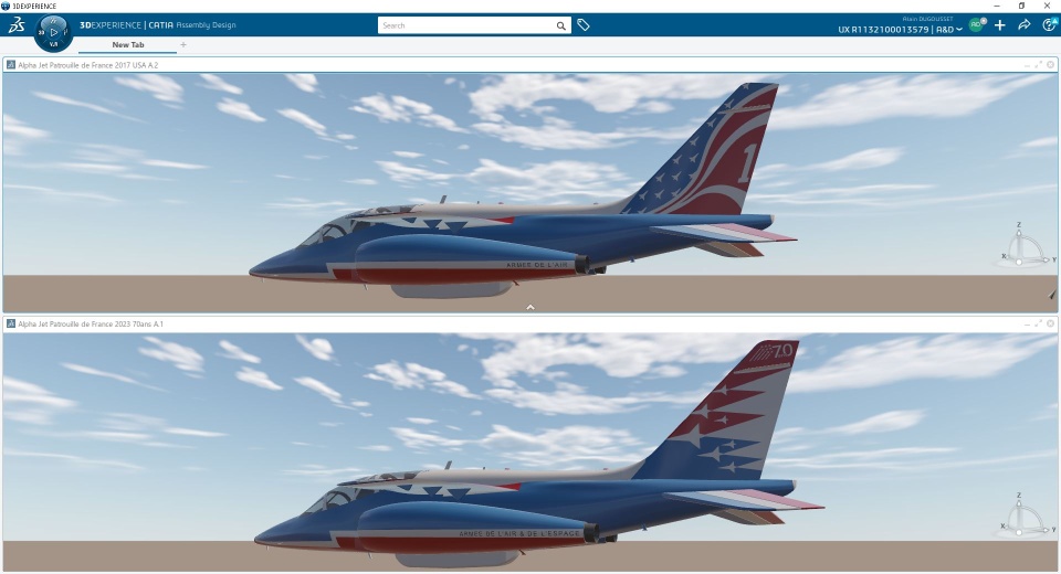 As this week takes place the International Paris Airshow @Le Bourget near Paris, I decided a few days ago to re-design in CATIA, thanks to our Mechanical&Shape roles, the AMB-DA/Dornier AlphaJet trainer plane used by our PAF.