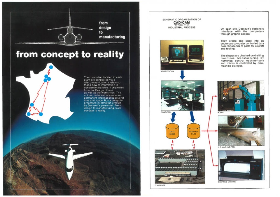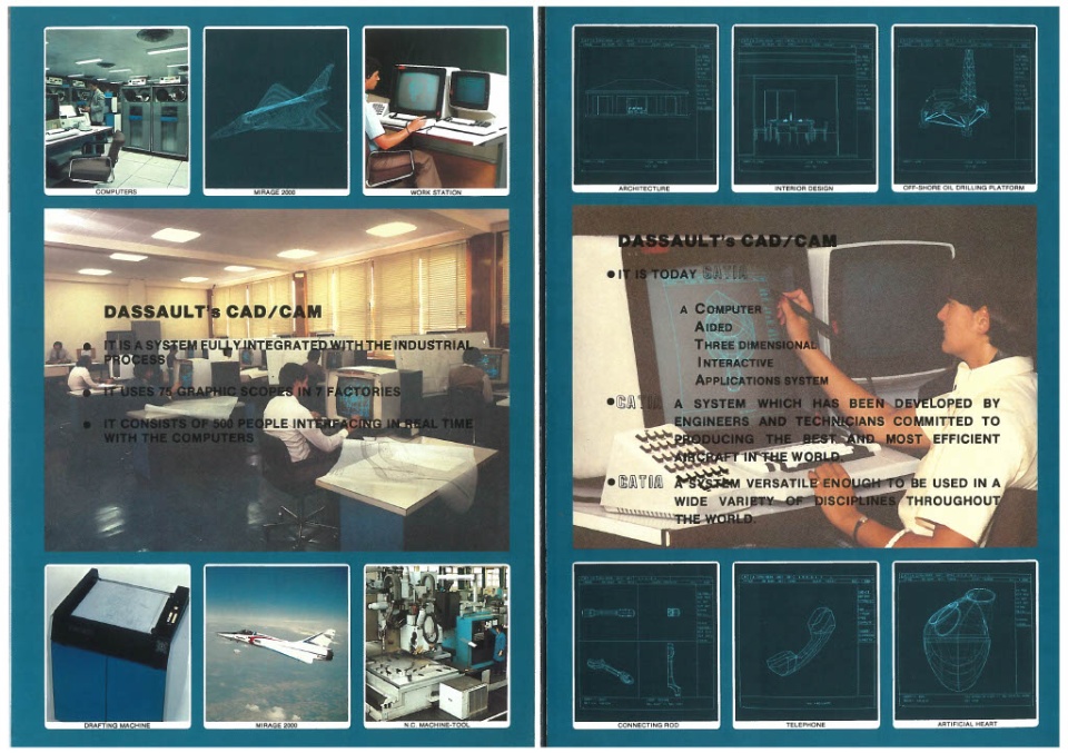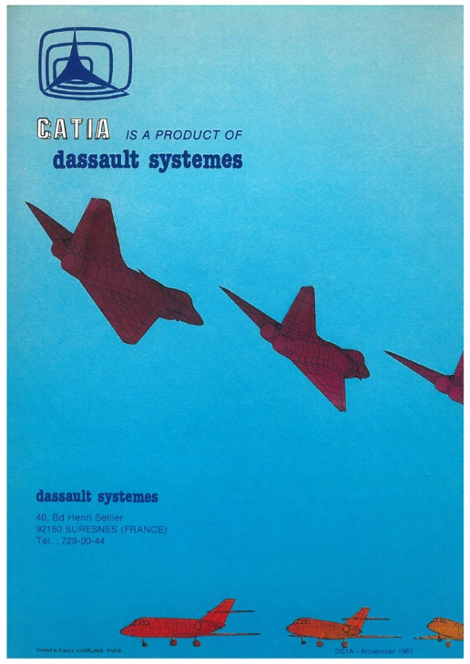 Here is the first CATIA flyer created in 1981, showcasing the virtual shape of the Dassault Aviation #Mirage4000, predecessor of the #Rafale.