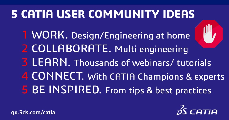 During this difficult time for you and your family, take the opportunity to work with CATIA at home, and benefit from the capabilities of the CATIA User Community to connect & strengthen your connections with thousands of CATIA experts and champions. Replay also our thousands of CATIA TV Webinars, tutorials...